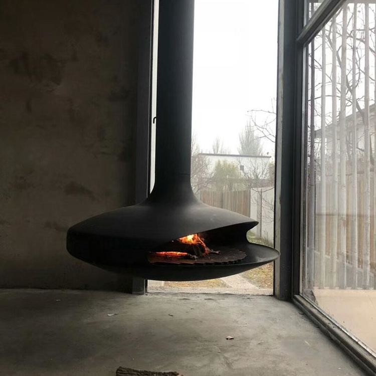 موقد فولاذي يعمل بالحطب، مدفأة معلقة مثبتة على السقف |